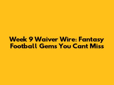 Week 9 Waiver Wire: Fantasy Football Gems You Can't Miss